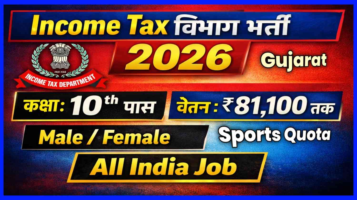 Income Tax Department Gujarat Sports Quota Recruitment 2026: आयकर विभाग गुजरात में स्पोर्ट्स कोटा के 46 पदों पर नई भर्ती जारी।